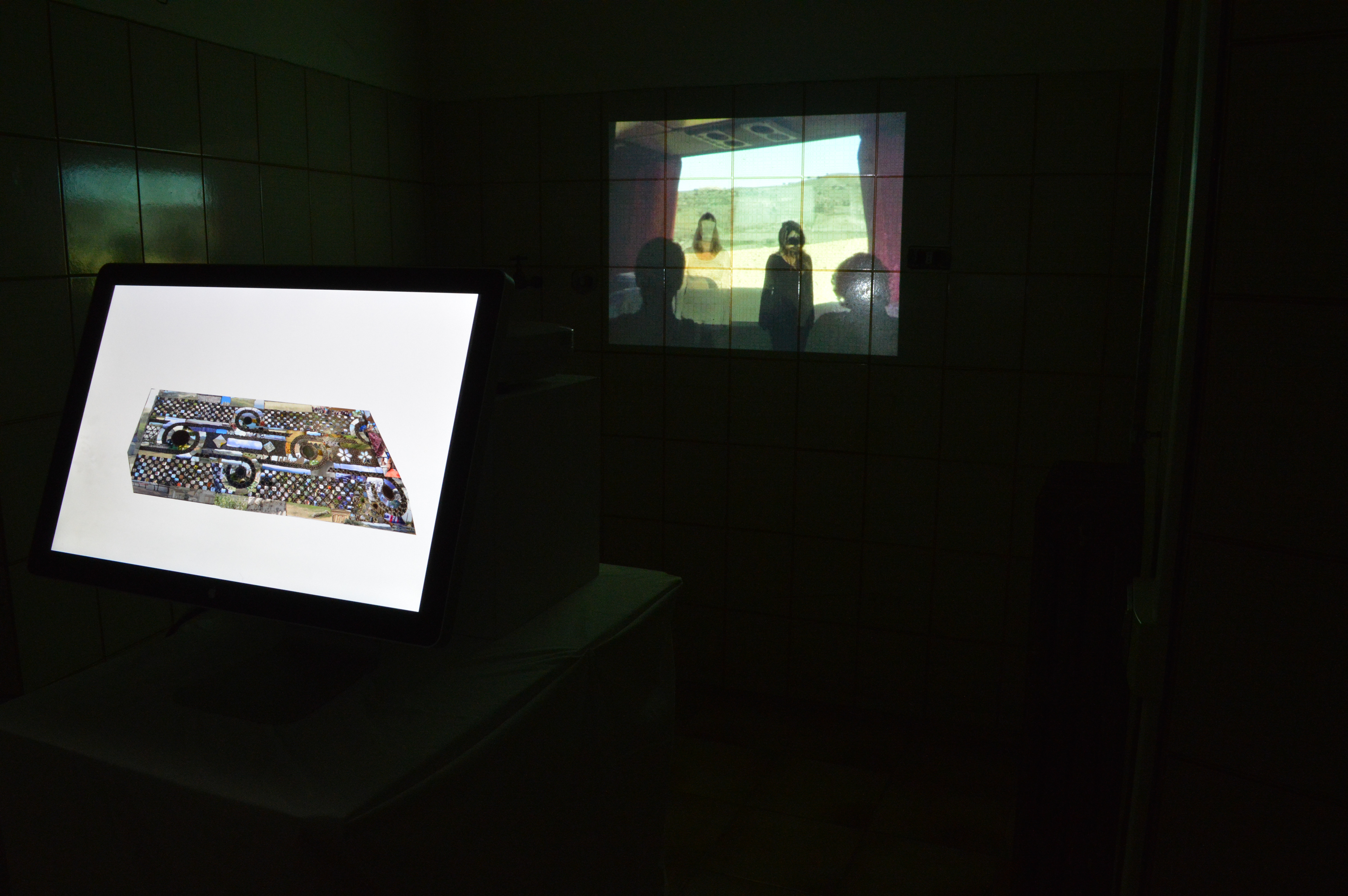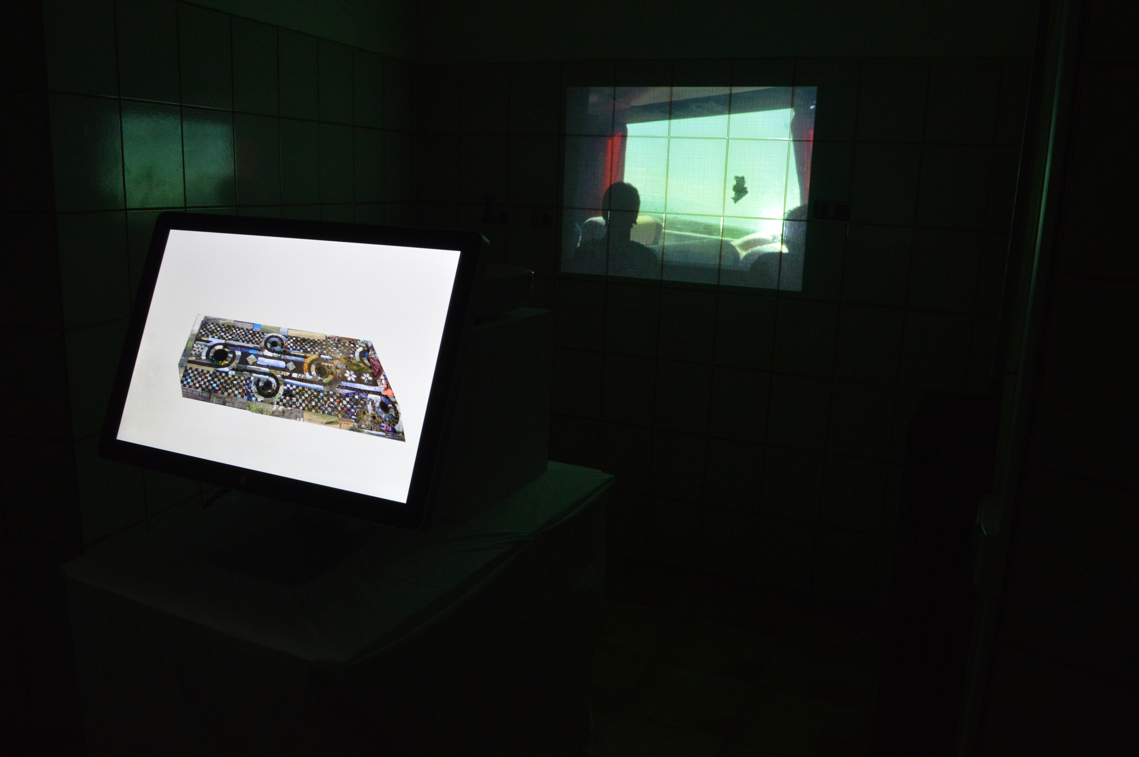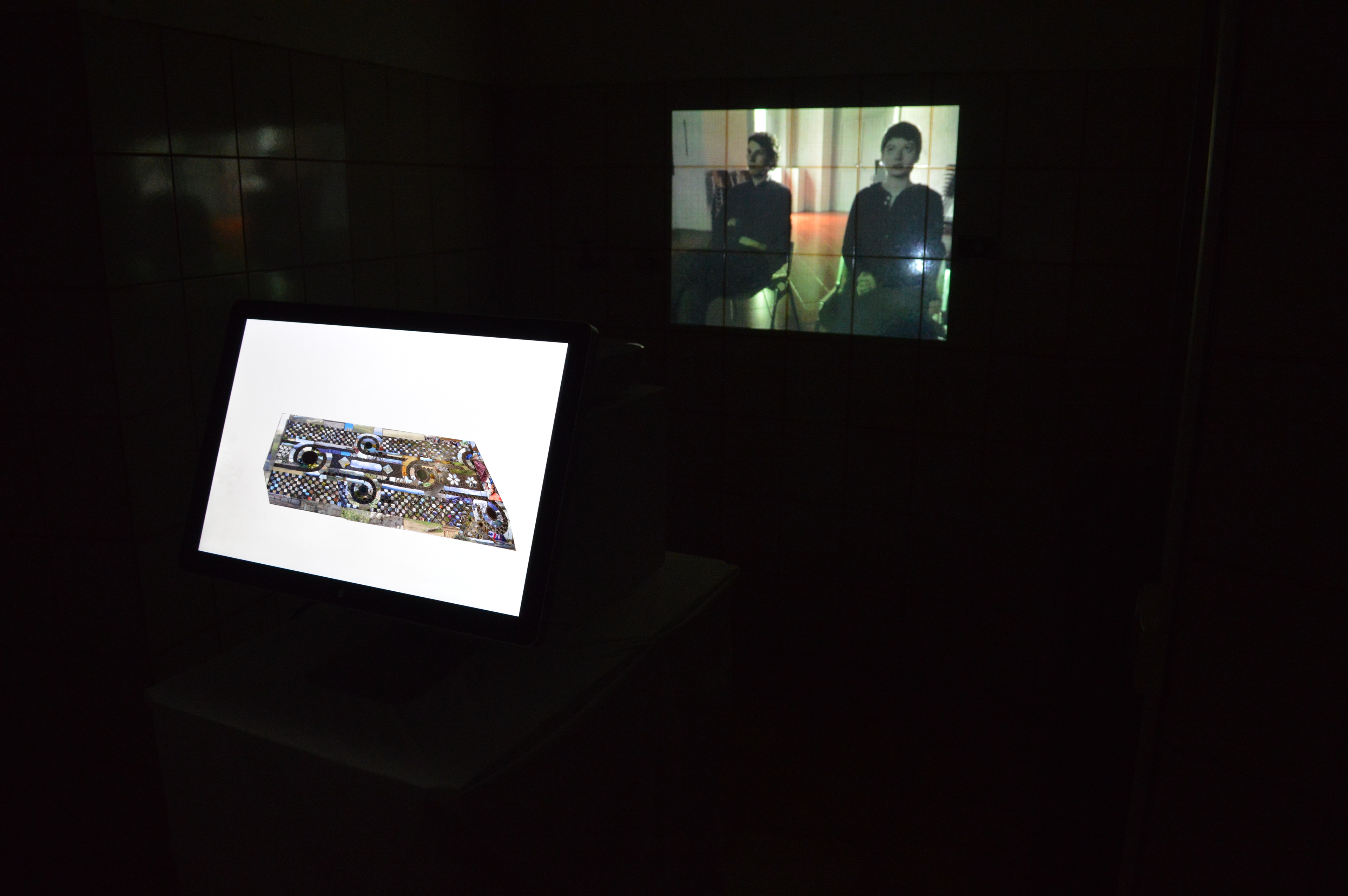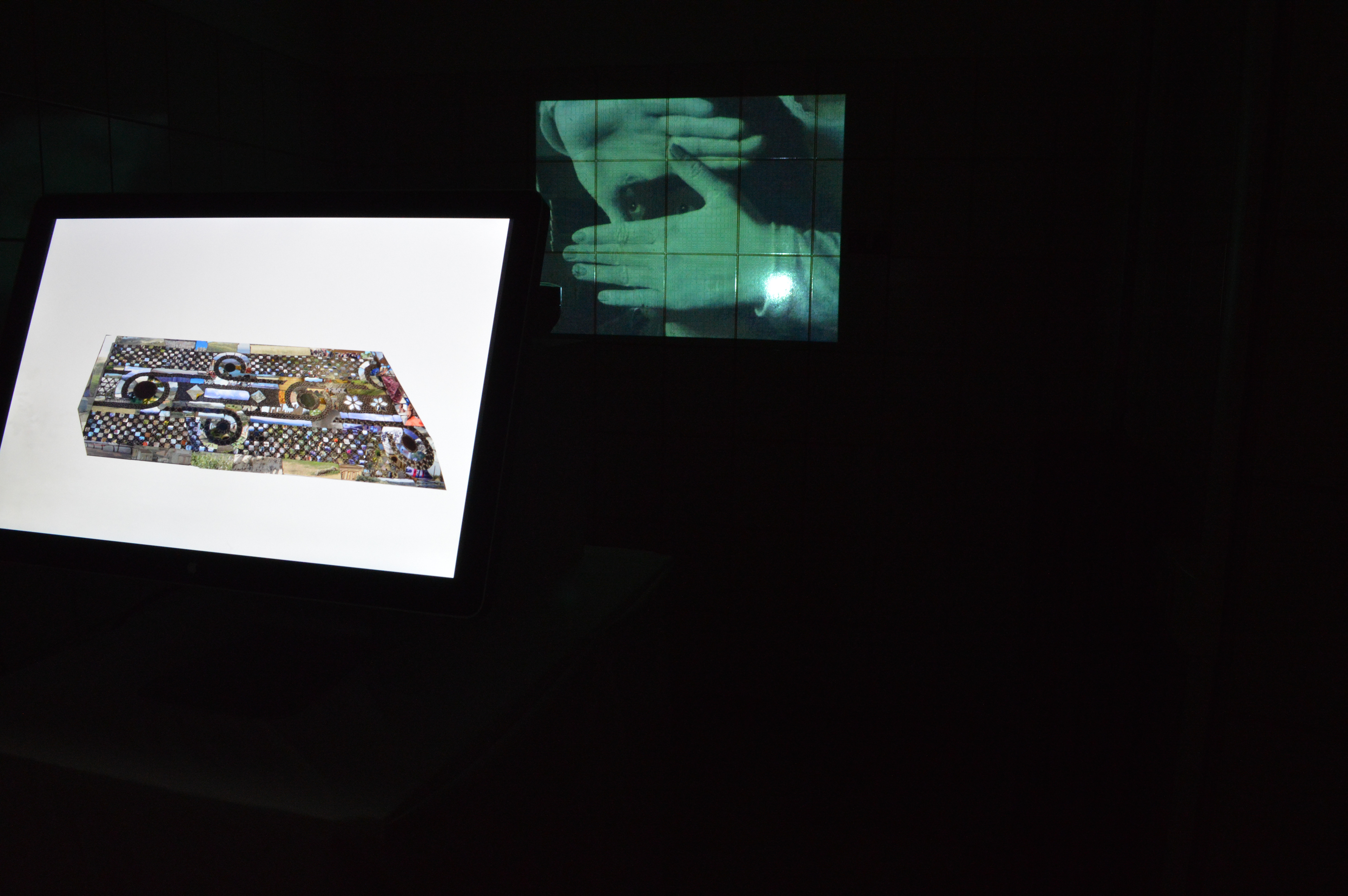 This installation work includes digital collage and projected video, which was presented in a small room of the Palazzetto Cenci, in Rome. The characters of the video face opposing forces that affect their perceptions of a landscape photography slideshow, for better and worse. The tiles of the infinity loop mosaic, shown in the digital collage, are like windows of opportunity, filled with images from the landscapes and travels around them, representing for an optimistic chance at seeing beyond the surface. The installation's room and its very tiled walls became part of the piece and the inception of frame into frame, viewpoint into viewpoint. This complex piece regarding individual perception and external influence conceptualizes the vast connections between framing as context and experience as opinion-forming.